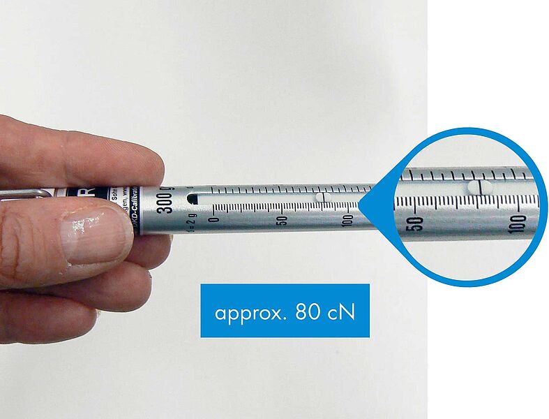 For example, the required tension for a finer thread differs from that of a coarser thread. Threads with a textile character may show display fluctuations during measurement, while very smooth threads typically produce more stable readings.