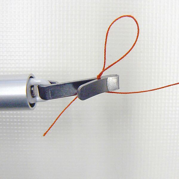 The thread must be firmly secured in the thread clip and must not slip through when it is pulled through later.