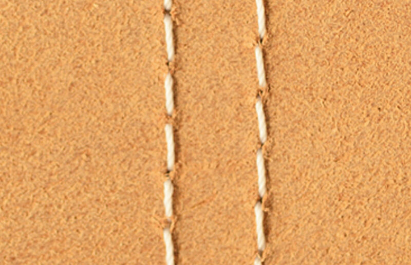 To keep the stitch hole as small as possible, the smallest possible needle size should be used. This prevents water from being forced through from the outside through a stitch hole that is too large. The following image shows a seam with stitch holes that are too large.